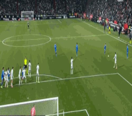 第10分钟,居莱尔任意球直接攻门,皮球高出横梁
