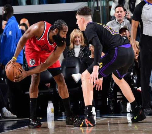 末节哈登先休息让小卡单独带队,哈登登场后命中了一个关键三分,这个三分价值连城,哈登助攻科林斯上篮命中,湖人一度缩小到4分后又被拉开到9分,湖人连丢后场篮板快船再度拉开到10分以上,虽然湖人再度缩小到3分可科林斯命中关键三分,祖巴茨篮下命中锁定胜局。